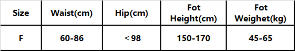 Size: Waist: 60-86cm, Hip < 98cm , For Height :150-170cm , Weight :45-65kg