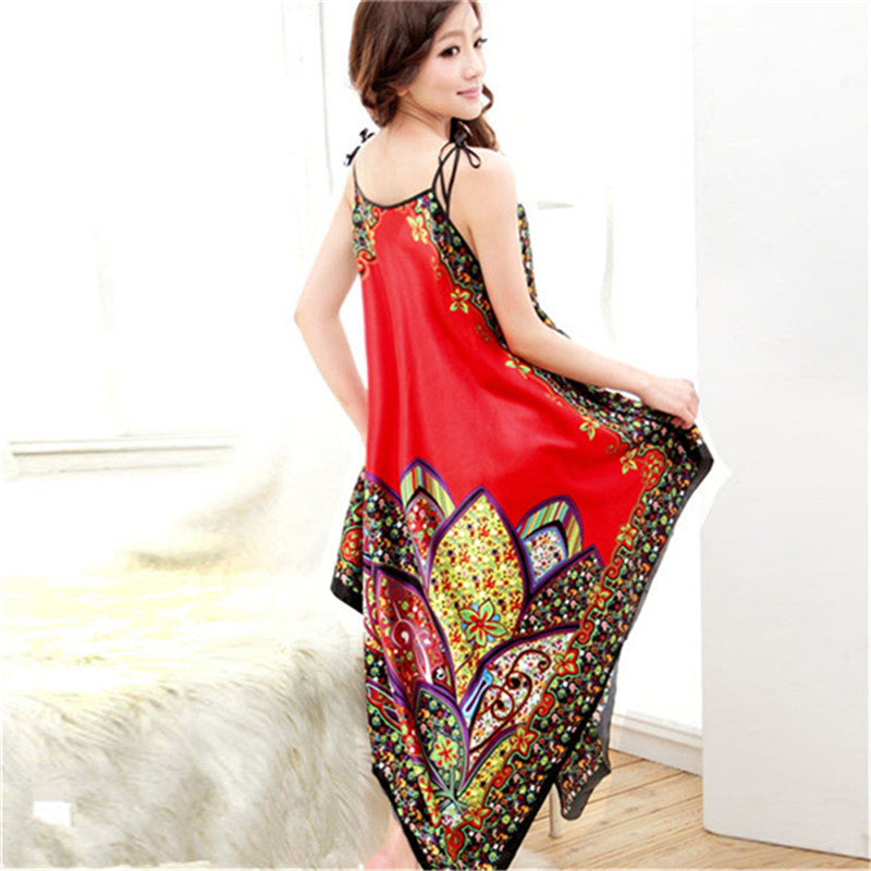 Item Type: NightgownsGender: WomenDecoration: NonePattern Type: PrintMaterial: RayonSeason: SummerDresses Length: Knee-LengthCollar: Square CollarSleeve Length: SleevelessMaterial Composition: Imitated silkModel Number: yrd